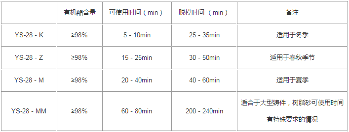 目前有多元醇丙酸;多元醇醋酸等多個系列產品。為了更好的服務于市場,我們開發了適應堿性酚醛樹脂的配套有機酯固化劑YS-28系列產品。